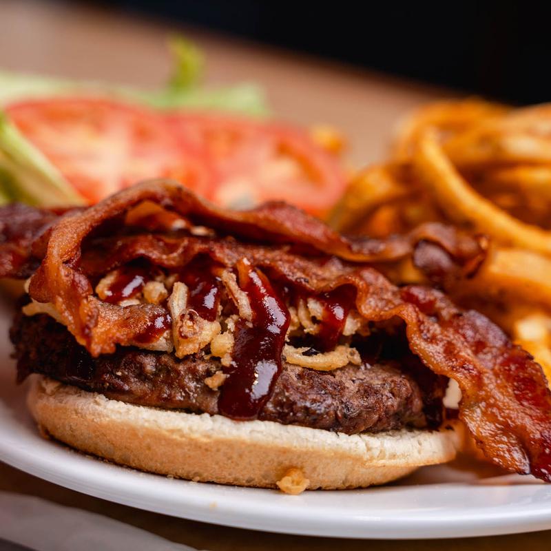 100% black Angus ground meat chargrilled and topped with sauteed onions and mushrooms served with mashed potatoes and vegetables.