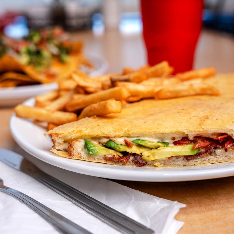 Bacon, tomatoes, and baby spinach topped with jack cheese & fresh avocado.
