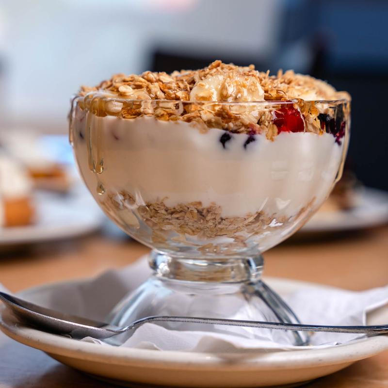 Topped with one scroop of your choice of ice cream, chocolate or strawberry syrup, sprinkles, whipped cream, and topped with a cherry.