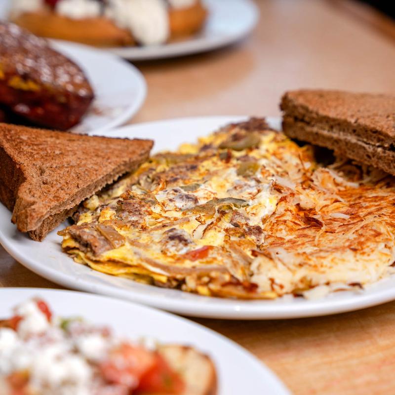 All omelettes are made with three extra large eggs and served with potato and your choice of Toast. No substitutions.